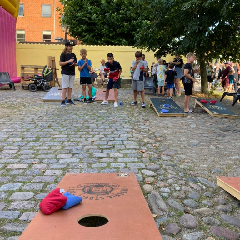 Cornhole Àr ett spel som har sitt ursprung i USA och spelas genom att kasta majspÄsar pÄ motstÄndarens brÀde för att fÄ poÀng. Det kan spelas av 2-4 spelare och Àr utmÀrkt för alla evenemang!
